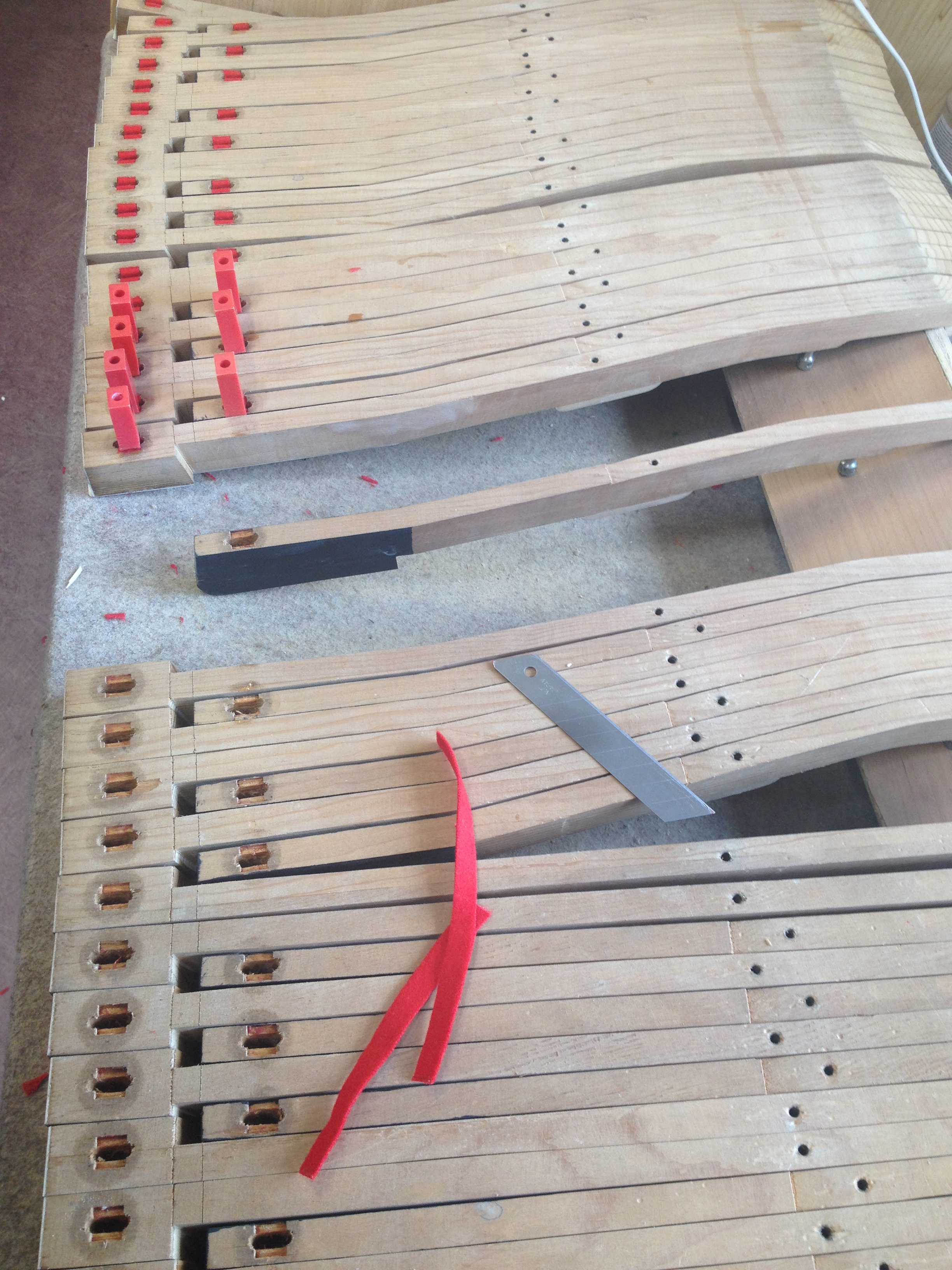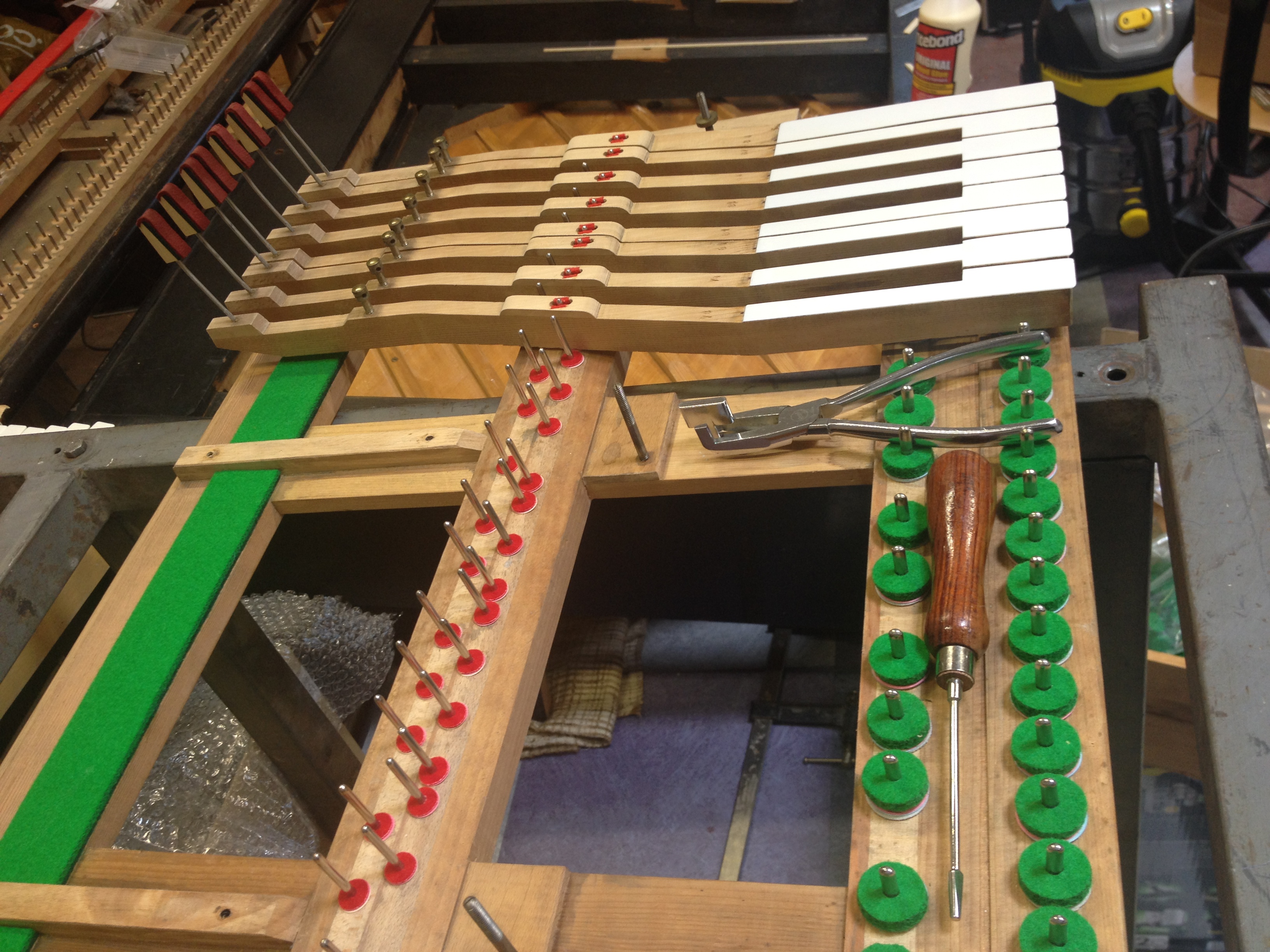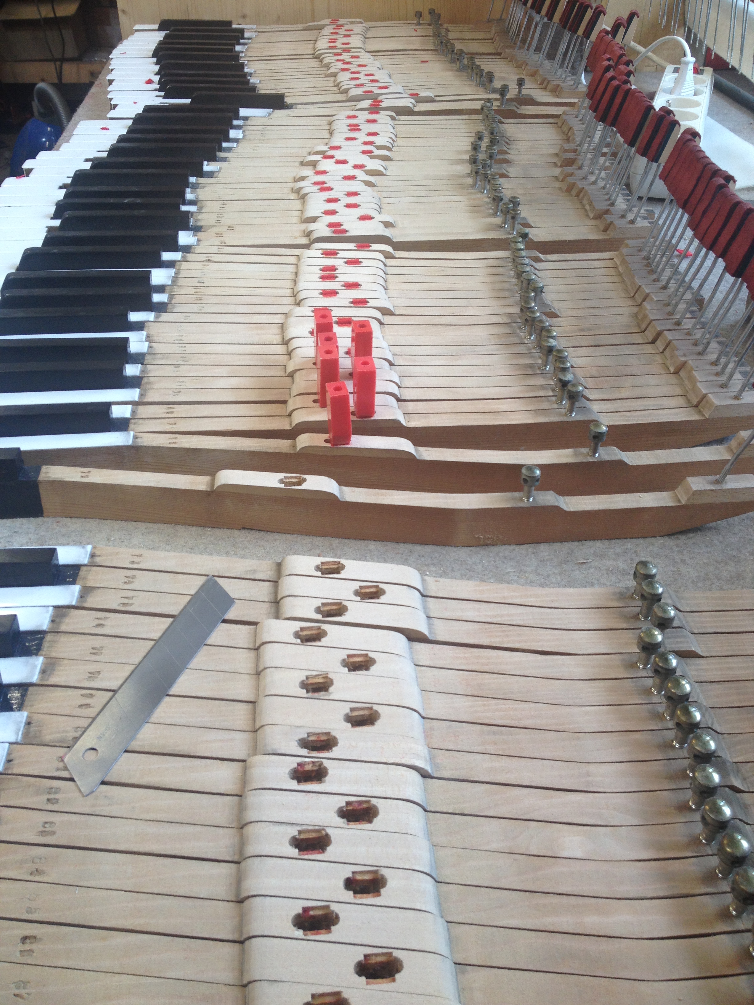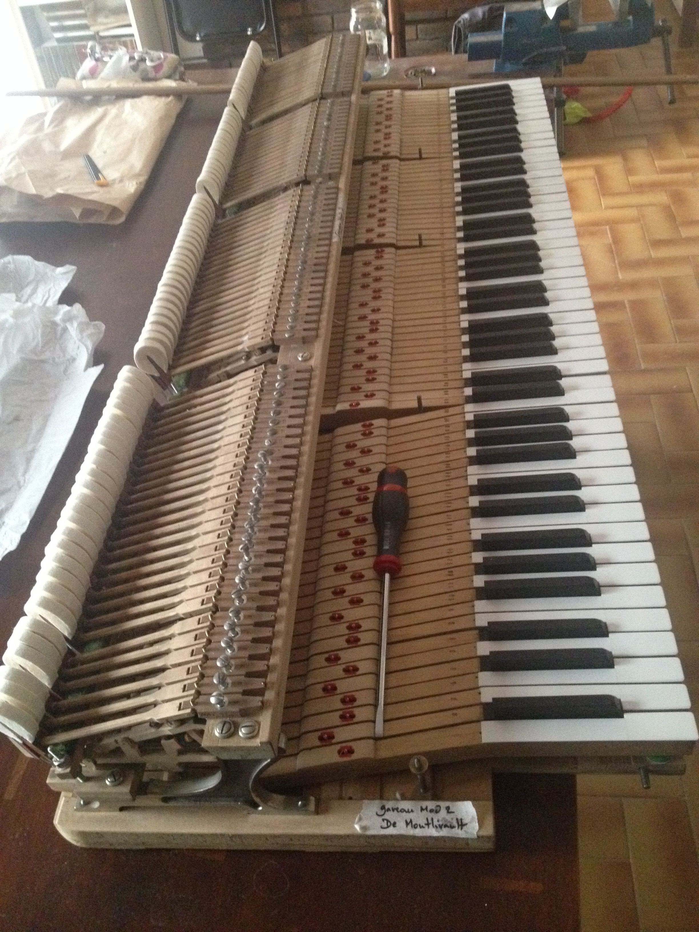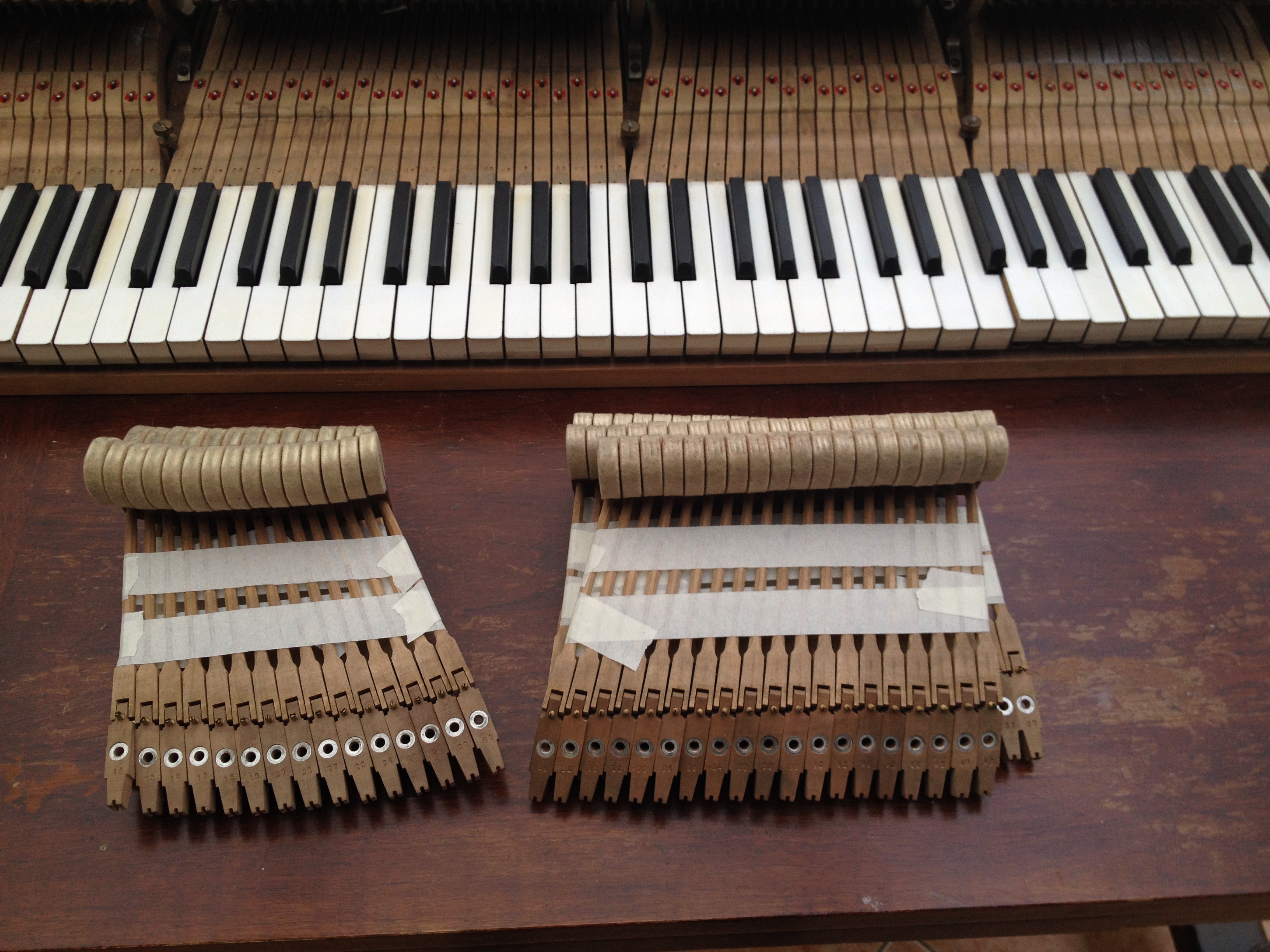 - Regarnissage des têtes de marteaux, des feutres et peaux de la mécanique et du clavier
