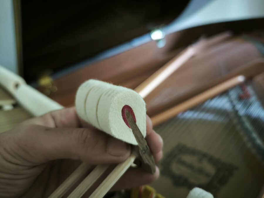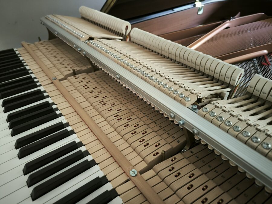 Cet instrument a été joué régulièrement mais avec beaucoup de douceur, si bien que les marteaux sont quasiment neufs, bien qu’harmonisés.