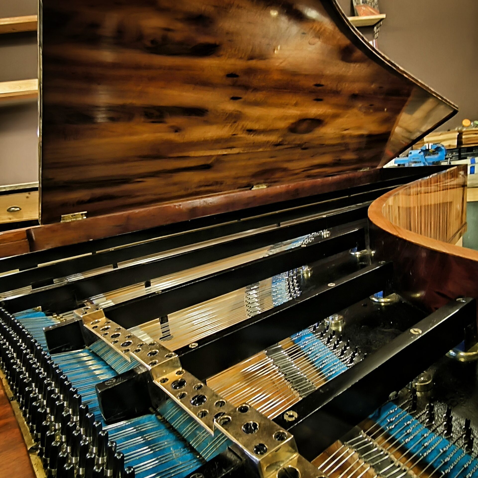 Clavier : 85 notes du la au la, ébène et ivoire d’origine, frontons arrondis