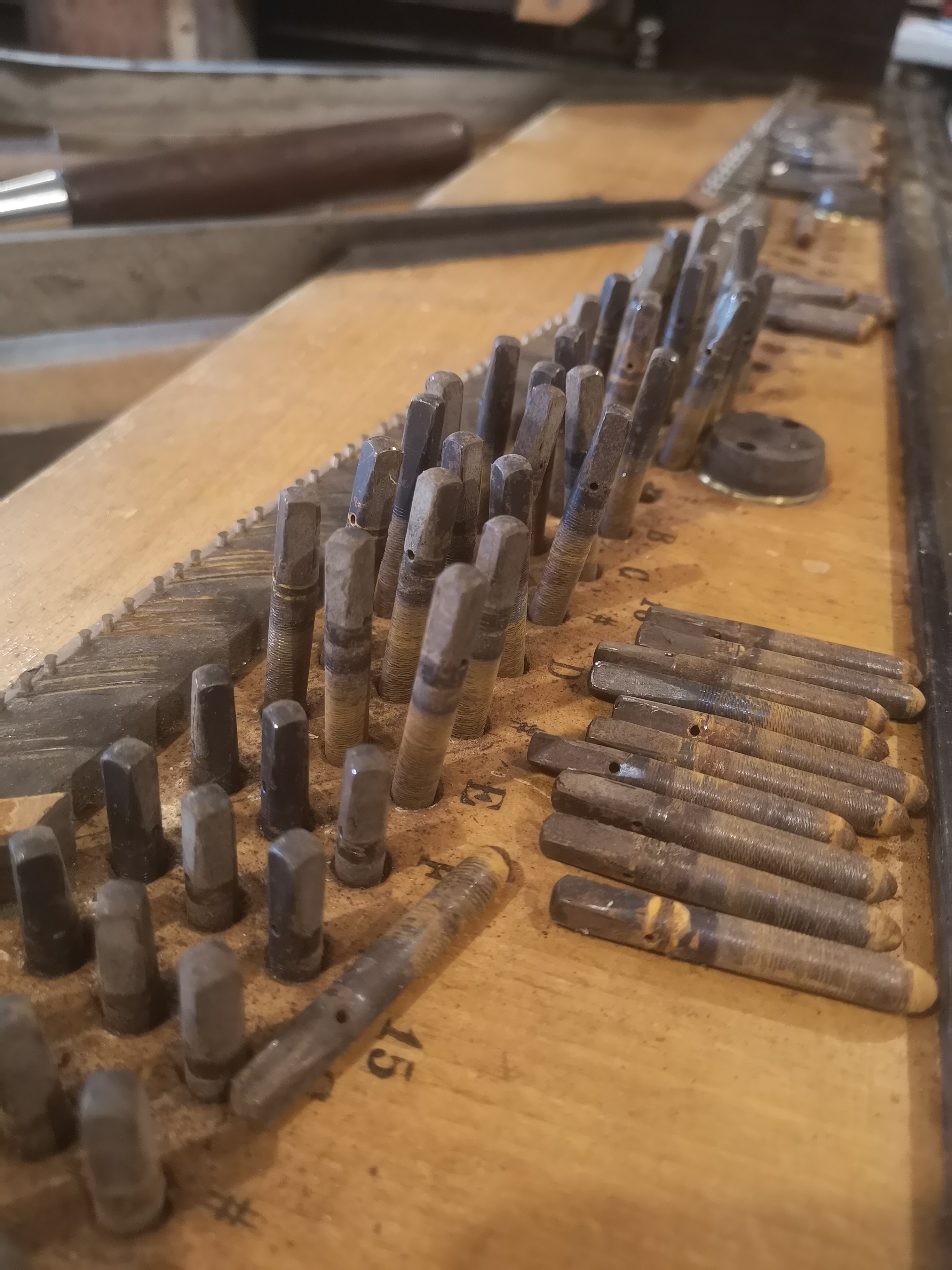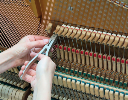 - Regarnissage des têtes de marteaux, des feutres et peaux de la mécanique et du clavier