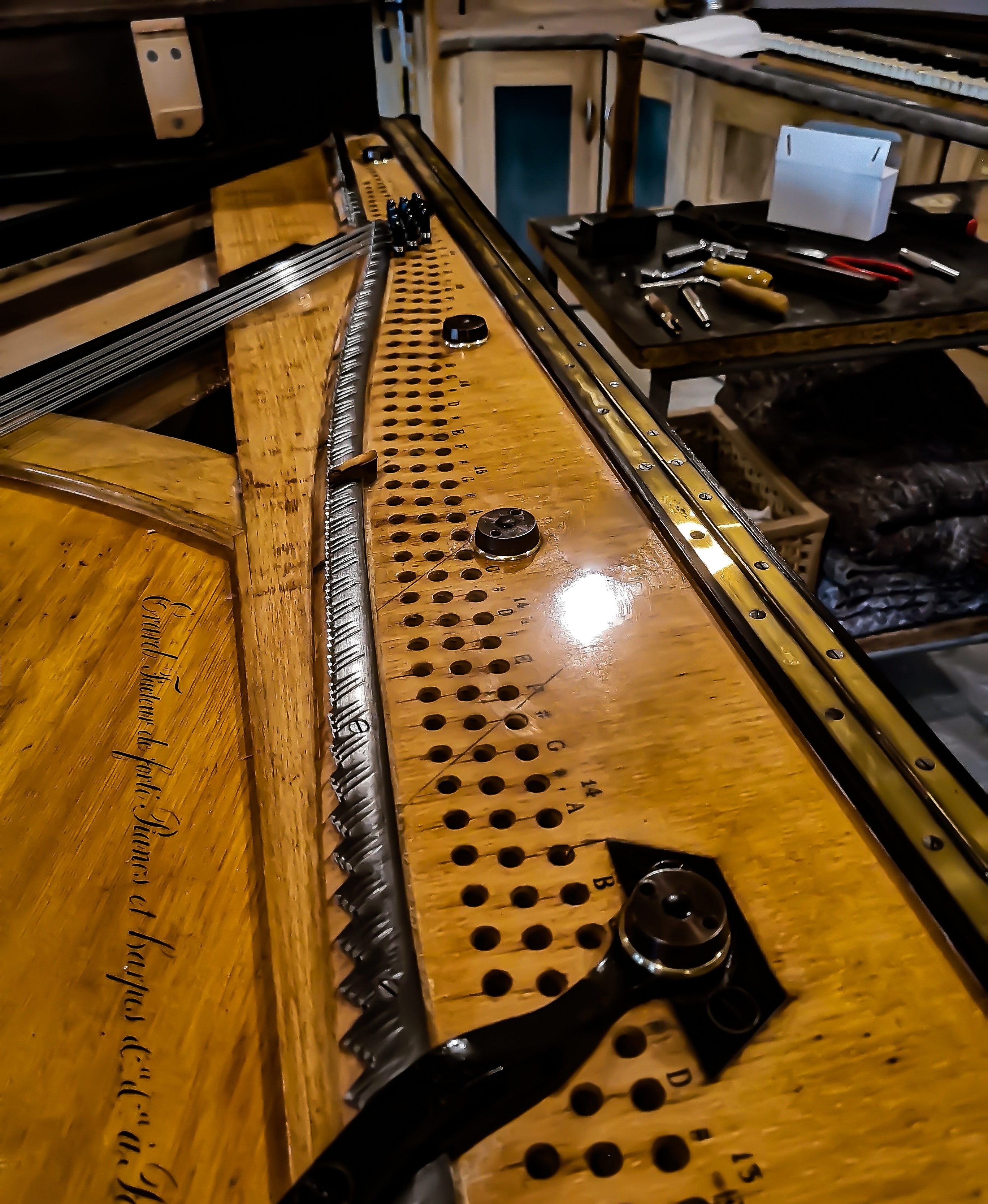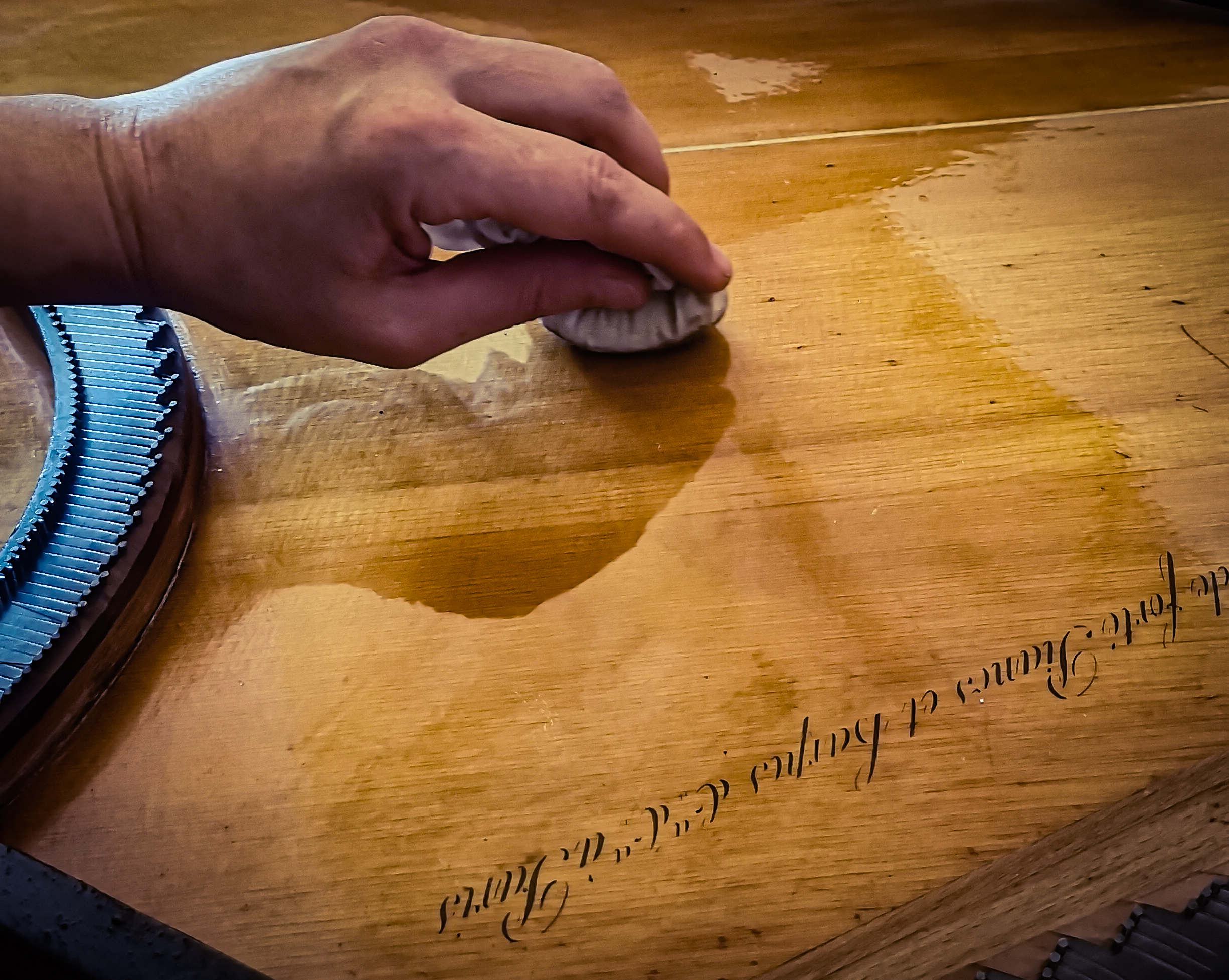 - Flipotage et revernissage de la table d’harmonie